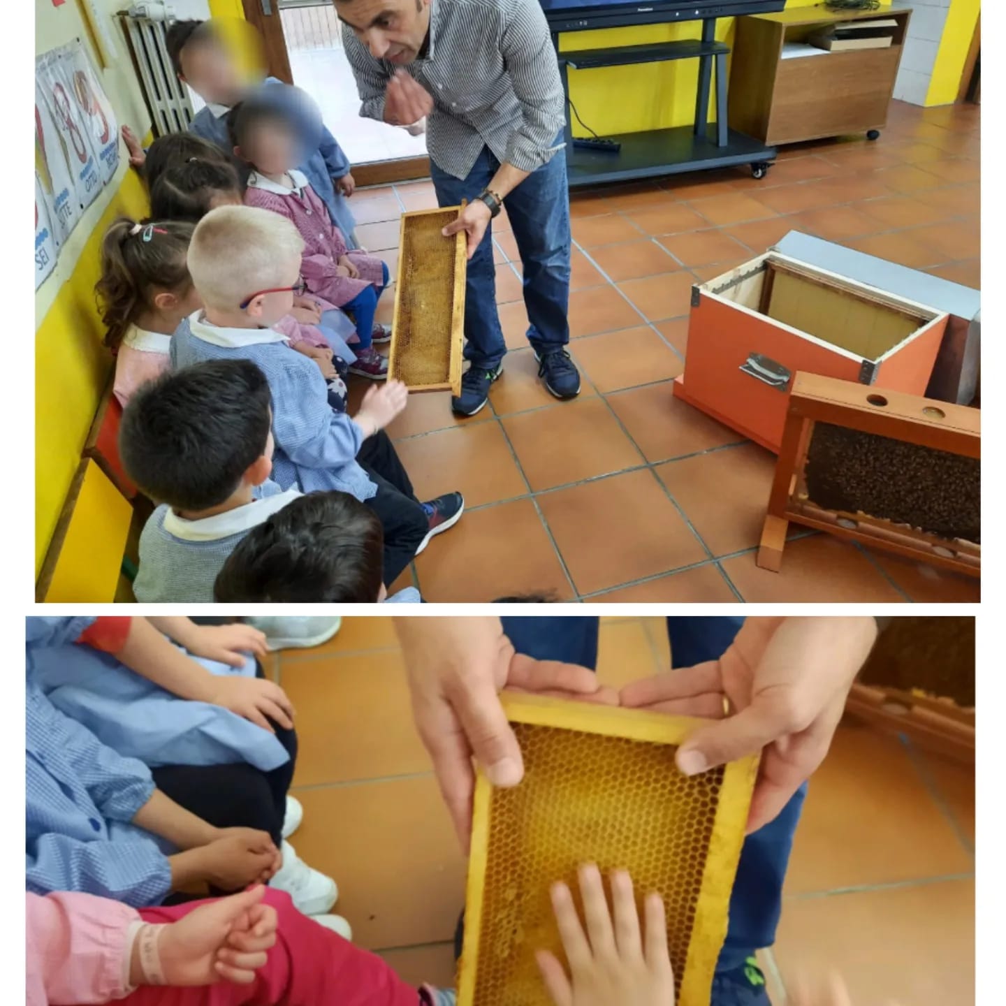 Nell’ambito delle attività formative prefissate nel progetto curriculare “Io e gli altri cittadini del mondo”, il 30 maggio 2024, gli alunni delle due sezioni della scuola dell’infanzia di Ripalimosani, all’interno delle loro aule, hanno avuto modo di osservare e toccare un’arnia didattica, degli strumenti utilizzati dagli apicoltori e una teca in vetro contenente delle api e dei favi messi a disposizione dal prof. Luigi Iafigliola.